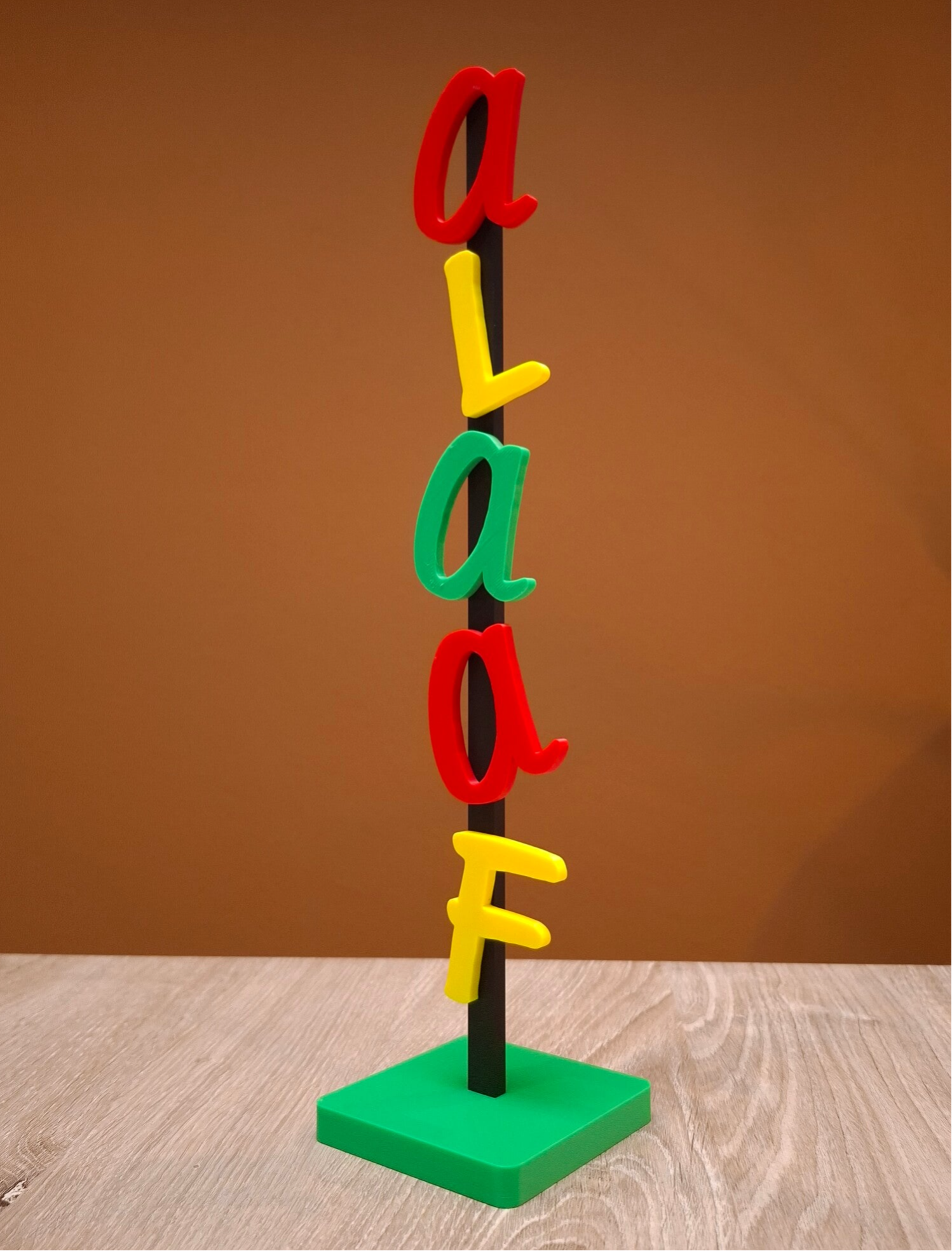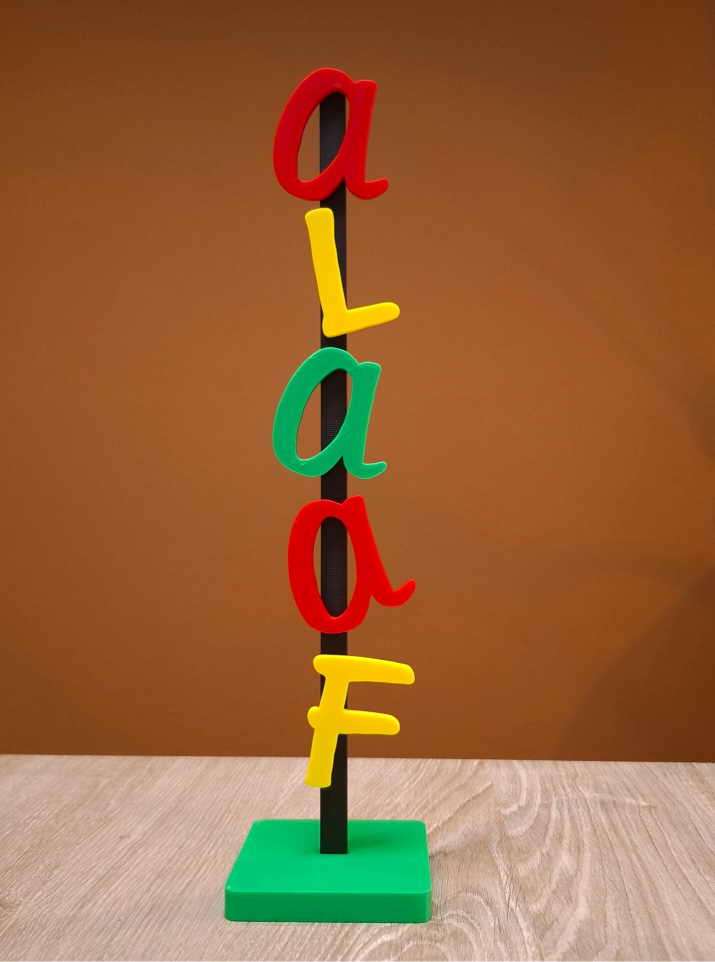 3D-geprinte standaard met de tekst "ALAAF"